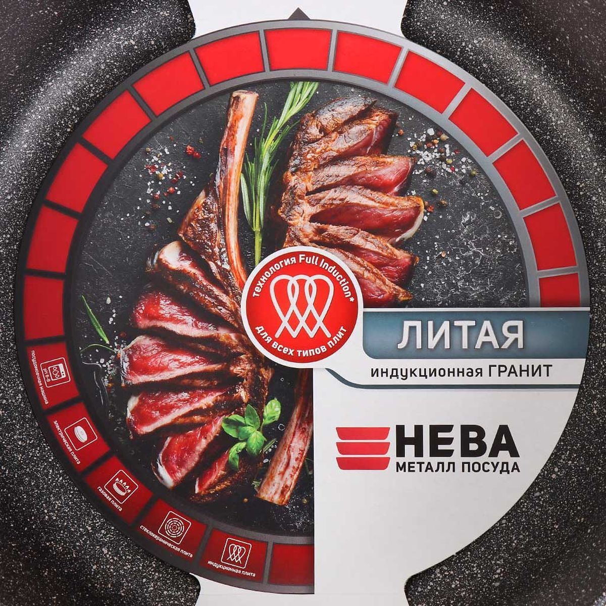 Эта сковорода выполнена с использованием современной технологии «Full Induction», дно сковороды оснащено цельным ферромагнитным диском, который распознается всеми типами индукционных плит и обеспечивает быстрый разогрев сковороды до идеальной температуры для жарки.