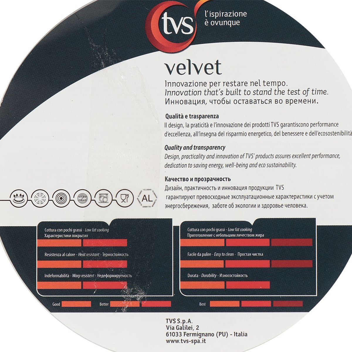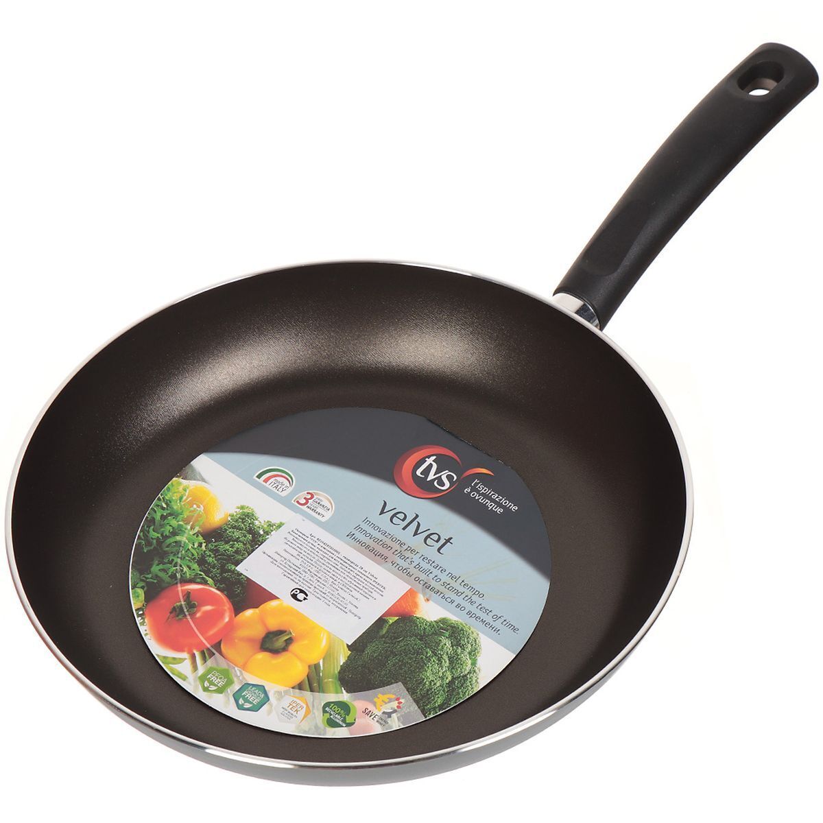 Линейка посуды Velvet отличается современным и лаконичным дизайном. Подойдет для любой кухни, как современной, так и классической. Посуда линейки Velvet подходит для всех видов плит, кроме индукционных. Антипригарное покрытие Ipertek прослужит не один год. Оно полностью безвредно для человека. Удобная ручка из бакелита. Всю посуду компании TVS можно мыть в посудомоечной машине.