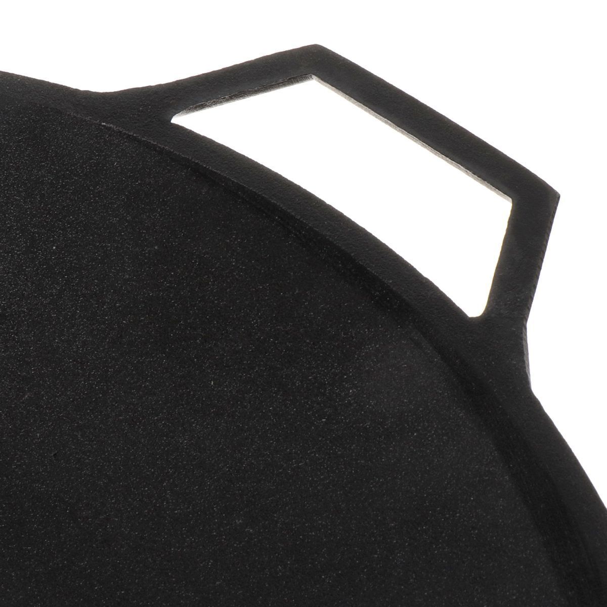 Садж чугунный - это выгнутая сковорода большого размера, использующаяся на огне: на мангале, на газовой плите, на специальной печи и др. Чугунный садж можно использовать как на выпуклой поверхности для приготовления лепешек, так и на вогнутой стороне для различных блюд. Данный Узбекский садж имеет диаметр 43 см и выполнен из чугуна. Чугун как раз подходит для такой вещи, так как он равномерно прогревается и очень долго сохраняет полученное тепло. По краям Узбекского чугунного саджа 2 боковые литые ручки. Литые ручки надежнее, чем ручки на клёпках, и сварных ручек, потому что изделие отливается целиком и монолитно. Такой вид посуды пришёл к нам из Азербайджана, где имеет большую популярность.