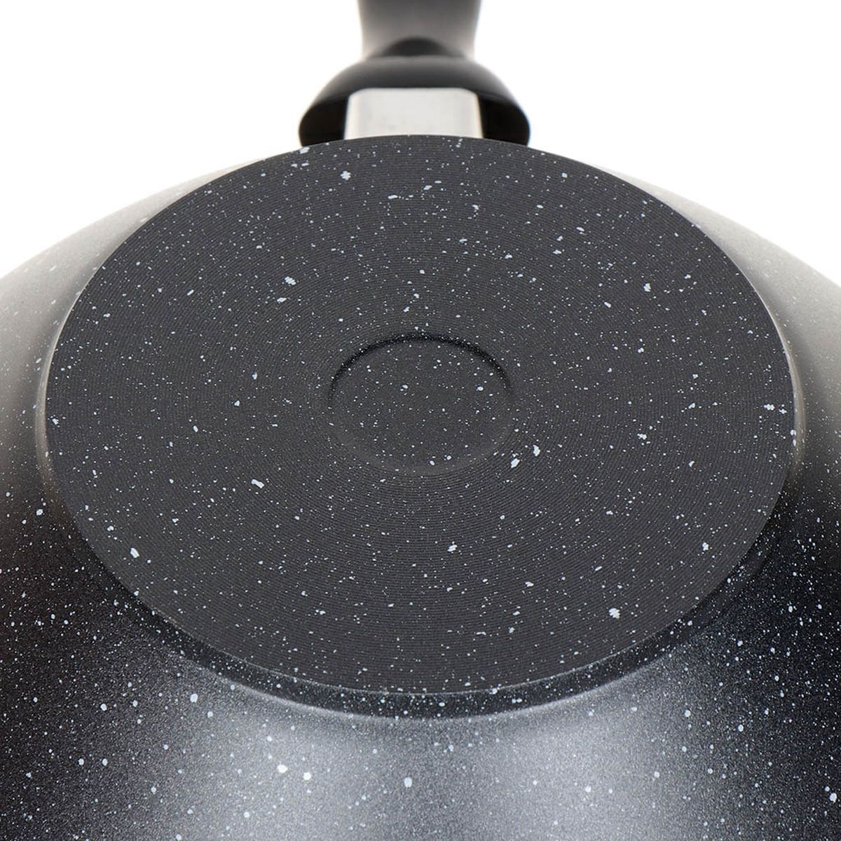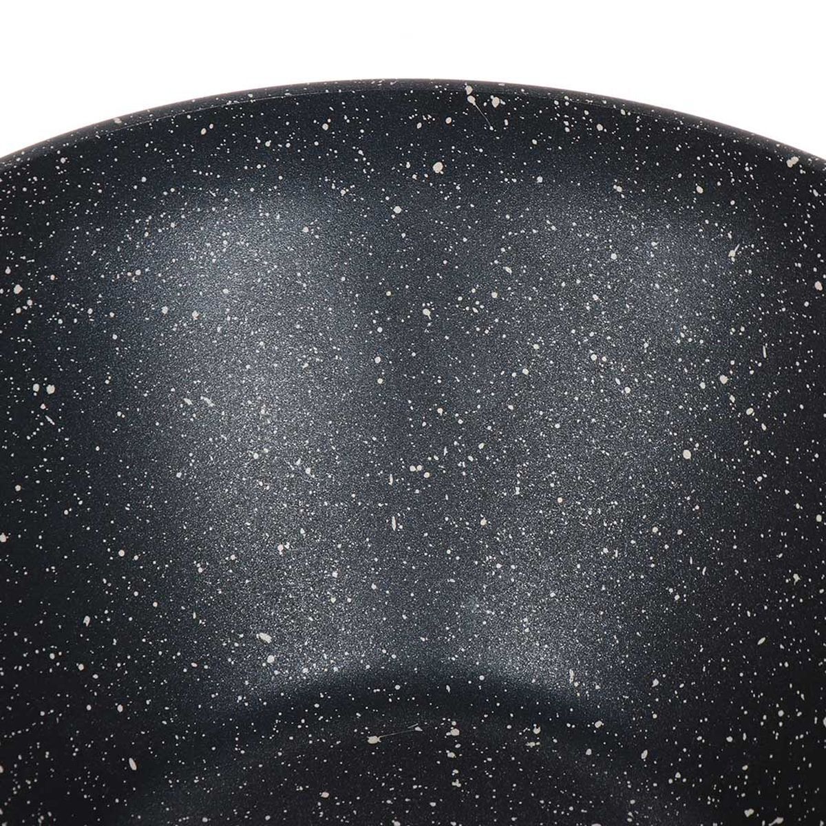 Современные технологи позволяют сочетать текстуру каменной поверхности с незаурядными антипригарными свойствами новейших образцов покрытий. В линейке "Классическая каменная" вы найдете идеальный баланс стиля, качества и стоимости. Корпус сковороды-WOK из литого алюминия быстро нагревается, не подвергается деформации и отлично держит жар. Увеличенная высота стенок облегчает перемешивание пищи и уменьшает количество брызг. Антипригарное покрытие Whitford Quantum2 с двойным усилением армировано смесью частиц высокой прочности самых современных материалов и имеет великолепную абразивную износоустойчивость. Покрытие не содержит PFOA (перфтороктановую кислоту), поэтому безопасно для человека.
