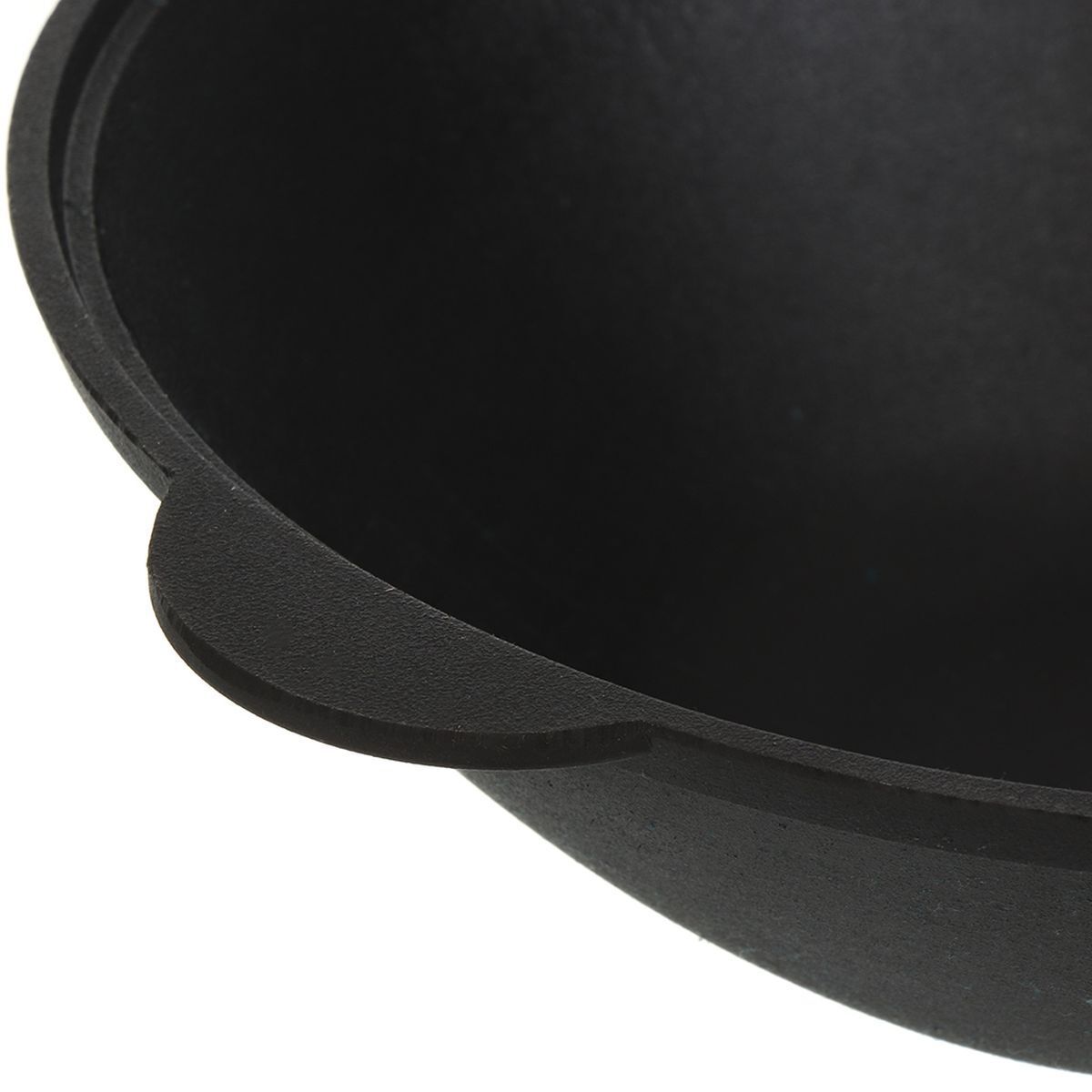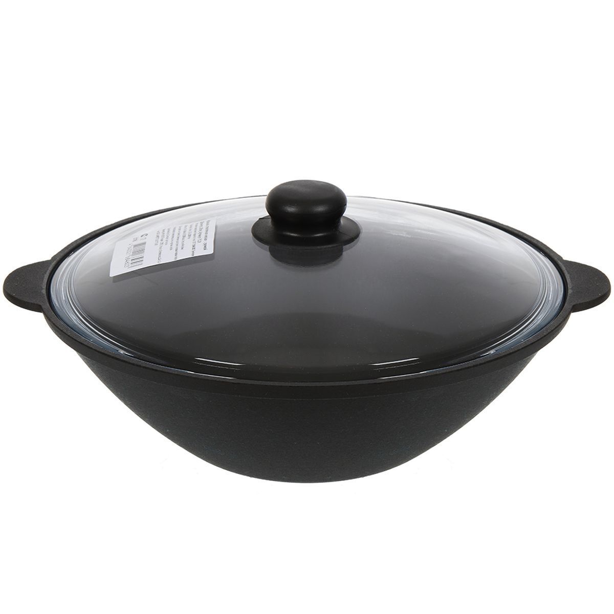 Сковорода-вок изготовленная из натурального экологически безопасного чугуна, оснащена крышкой из пищевого алюминия. Чугун является одним из лучших материалов для приготовления еды - он очень практичный, не выделяет токсичных веществ, обладает высокой теплоемкостью и способен служить долгие годы. Такая сковорода замечательно подойдет для приготовления жаренных и тушеных блюд. Вок представляет собой глубокую сковороду с круглым дном. К верхней части сковорода увеличивается в диаметре. А по бокам «чаши» расположены ушки. Благодаря непривычной форме посуды, на нем очень удобно готовить на открытом огне. Так как пламя охватывает все стенки посуды, пища прожаривается равномерно и очень быстро.