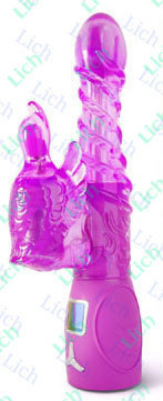 Сиреневый ротатор витой со стимулятором клитора в виде утки, 25.5 см