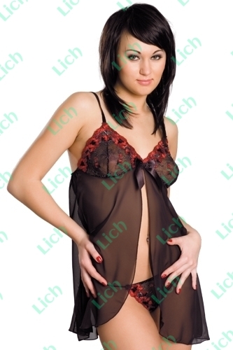 Шифоновая сорочка с шёлковой вышивкой, на регулируемых бретельках, с разрезом спереди, трусики-стринг на эластичных завязках. Торговая марка эротического белья EROLANTA уже завоевала популярность и успешно продается во многих сексшопах России. Коллекция подобрана так, что может удовлетворить запросы покупателей разных вкусов и предпочтений. Это и сексуальные корсеты, откровенные боди, воздушные и прозрачные пеньюары, интересные и оригинальные секси-трусики, игровые фантазийные костюмы, прозрачные кружевные комплекты и корсеты, соблазнительные комбинации и пеньюары, украшенные рюшами, вышивкой и декоративными жемчужинами. Любительницы мини подберут себе яркое прозрачное платье в комплекте с трусиками-стринг, отделанное пикантной шнуровкой. Вся продукция упакована в стильную и презентабельную картонную упаковку, что позволяет выглядеть коллекции белья EROLANTA ярко и оригинально. Знатоки ценят бельё EROLANTA за достойное качество и его невысокую цену. Название, состав и другая необходимая информация на упаковке представлена на русском языке, что соответствует российскому законодательству, а само бельё имеет соответствующие сертификаты качества. Оптовые продажи эротического белья EROLANTA.