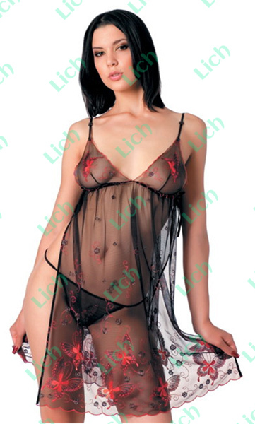 Откровенная и летящая сорочка с вышивкой в виде бабочек, с глубокими разрезами по бокам, бретельки регулируются по длине, в комплекте трусики-стринг. Размер: S-L. Цвет: черный. Торговая марка эротического белья EROLANTA уже завоевала популярность и успешно продается во многих сексшопах России. Коллекция подобрана так, что может удовлетворить запросы покупателей разных вкусов и предпочтений. Это и сексуальные корсеты, откровенные боди, воздушные и прозрачные пеньюары, интересные и оригинальные секси-трусики, игровые фантазийные костюмы, прозрачные кружевные комплекты и корсеты, соблазнительные комбинации и пеньюары, украшенные рюшами, вышивкой и декоративными жемчужинами. Любительницы мини подберут себе яркое прозрачное платье в комплекте с трусиками-стринг, отделанное пикантной шнуровкой. Вся продукция упакована в стильную и презентабельную картонную упаковку, что позволяет выглядеть коллекции белья EROLANTA ярко и оригинально. Знатоки ценят бельё EROLANTA за достойное качество и его невысокую цену. Название, состав и другая необходимая информация на упаковке представлена на русском языке, что соответствует российскому законодательству, а само бельё имеет соответствующие сертификаты качества. Оптовые продажи эротического белья EROLANTA.