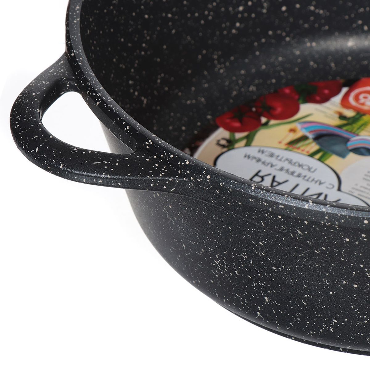 В производстве литой антипригарной посуды используем высококачественное сверхпрочное антипригарное покрытие, которое наносится методом напыления, что обеспечивает долговечность покрытия и высокую надежность нашей посуды. Применяемое покрытие не содержит в своем составе опасных для здоровья человека веществ PFOA и устойчиво к агрессивным средам и воздействиям температуры. При нагревании посуды также не выделяются вредные токсичные и канцерогенные вещества, использование такой посуды абсолютно безопасно.