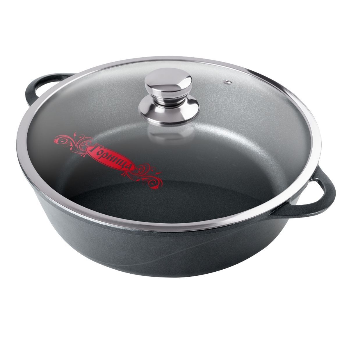 Литая алюминиевая жаровня с антипригарным покрытием подходит для газовых, электрических и стеклокерамических плит. Жаровни с цельнолитыми ручками можно использовать в духовом шкафу. В жаровне можно готовить разные продукты: мясо, овощи, грибы и т.д.
