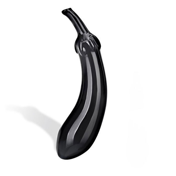 Черный стеклянный стимулятор в виде баклажана. Стимулятор полностью повторяет форму овоща - объемные листочки и хвостик. Длина стимулятора без ножки: 11 см. Максимальный диаметр: 3 см.