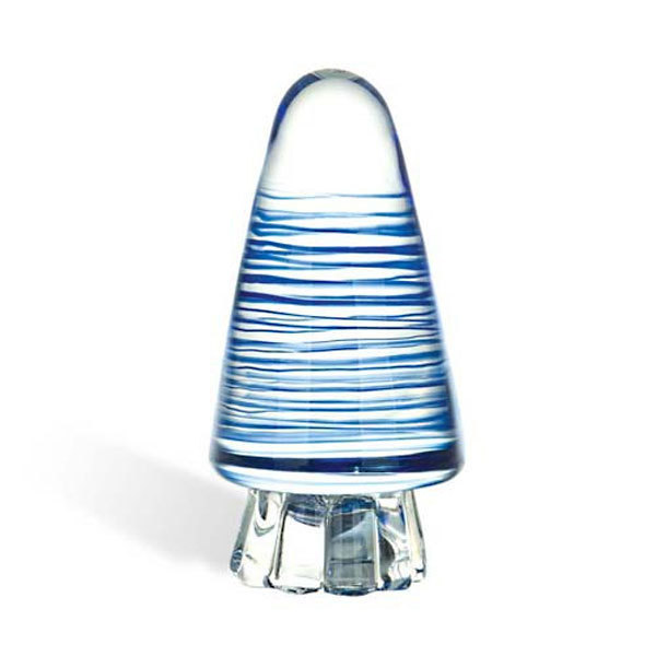 Анальный конус из стекла с мерцающим светодиодом внутри. Поверхность конуса украшена голубыми полосами. Рекомендуем дополнительно использовать шнурок, который нужно обвязать под самой широкой частью конуса - он поможет безопасно извлечь конус после использования. Шнурок в комплект не входит. Высота конуса - 9,5 см. Максимальный диаметр - 4 см. Рабоатет от батареек типа таблетка - в комплекте.