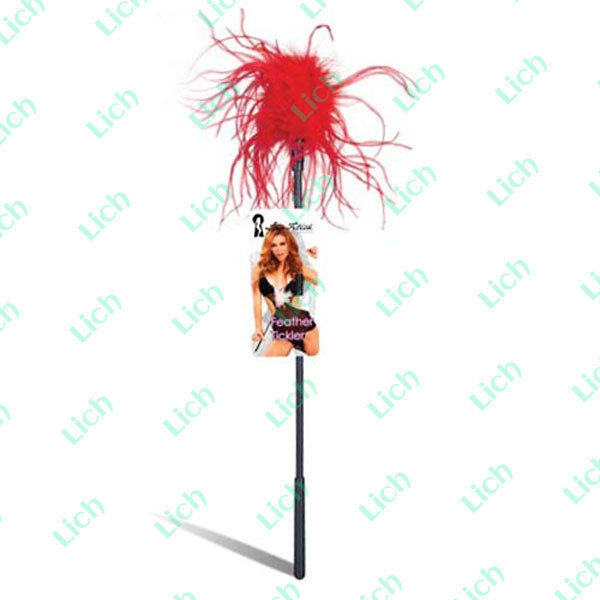 Ласкающая палочка из пластика с мягким пушистым наконечником из перьев красного цвета. Перья прочно закреплены в кольцо, что позволяет палочке служить очень долго. Жесткая пластиковая палочка с рукоятью очень удобна в использовании. Общая длина палочки вместе с перышками - около 45 см.