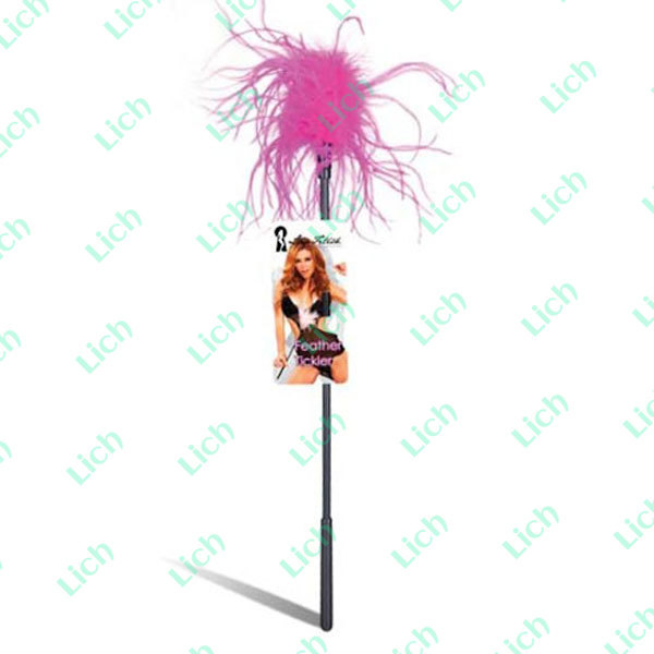 Ласкающая палочка из пластика с мягким пушистым наконечником из перьев цвета фуксии. Перья прочно закреплены в кольцо, что позволяет палочке служить очень долго. Жесткая пластиковая палочка с рукоятью очень удобна в использовании. Общая длина палочки вместе с перышками - около 45 см.