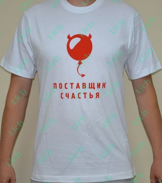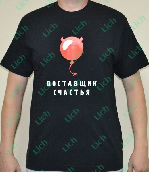 Мужчина, дарящий одно лишь счастье… И кто откажется от такого сокровища? Надев эту яркую футболку с чертенком и надписью, каждый представитель сильного пола сразу же будет выделяться в толпе. Еще бы, сам поставщик счастья идёт! Мужчины, будьте готовы к тому, что к вам будут обращены взгляды всех окружающих, особенно милых дам… В продаже имеются разные цвета и размеры.