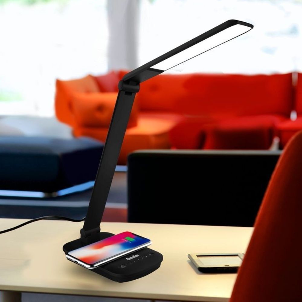 В основание светильника встроена мощная 10 Вт беспроводная зарядка для мобильных телефонов. Световой индикатор работы зарядки голубого цвета показывает идет ли заряд аккумулятора мобильного телефона.