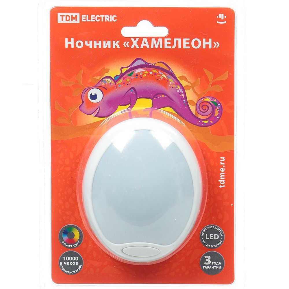 Ночник TDM, Хамелеон, в розетку, пластик, 0.5 Вт, 220 В, с выкл, D 95, бел, SQ0357-0005
