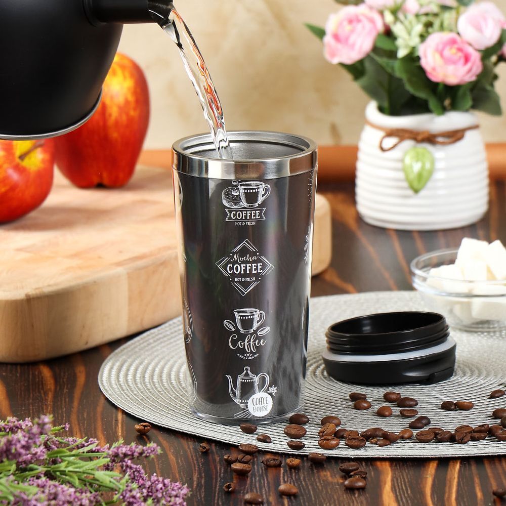 Термокружка создана для тех, кто всегда находится в движении. Преподнесите своему близкому такой подарок и он, наслаждаясь любимым напитком, будет вспоминать о вас везде: на работе, отдыхе, в дороге. Благодаря классической форме, держать в руках стакан очень удобно.