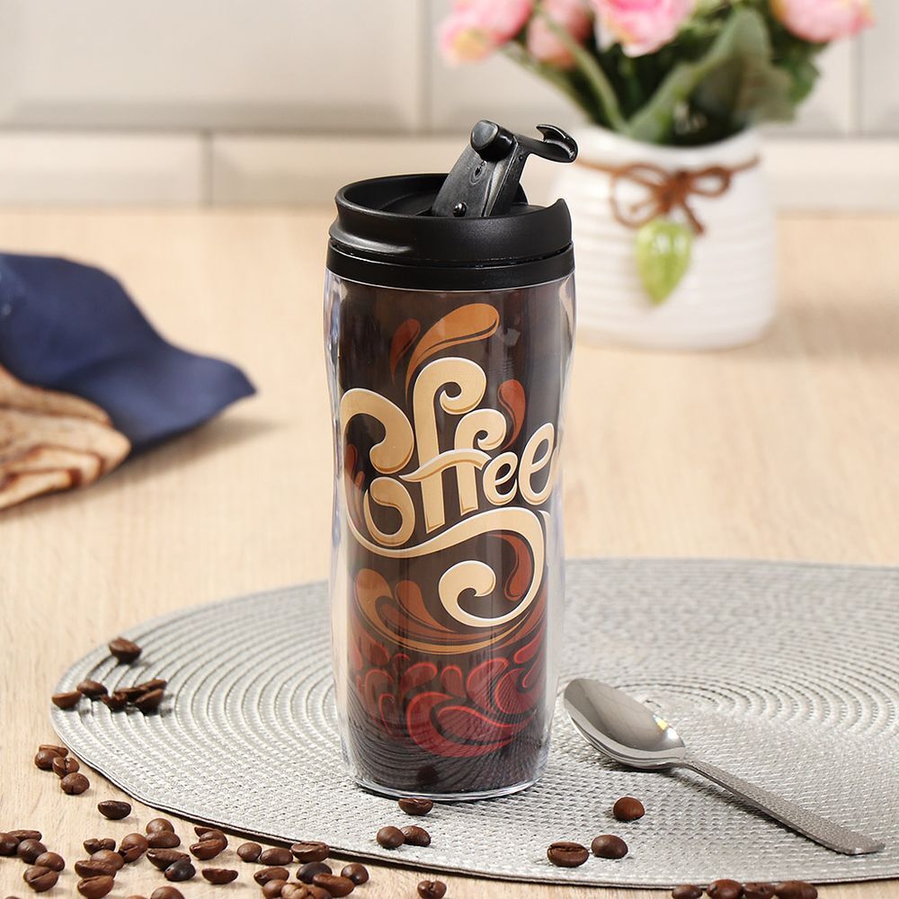 Термокружка пластик, 0.38 л, Daniks, Кофе напитки, YYCF001-23