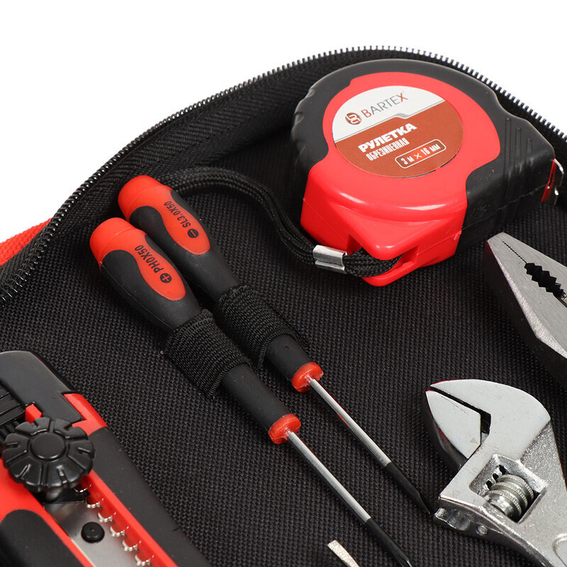 Набор ручного инструмента, состоящий из 12 наименований, выполненных из высококачественной хромованадиевой стали, - это наилучший подарок для мужчины, а также удачное вложение в жизнь дома. Инструменты помещены в удобную сумку.