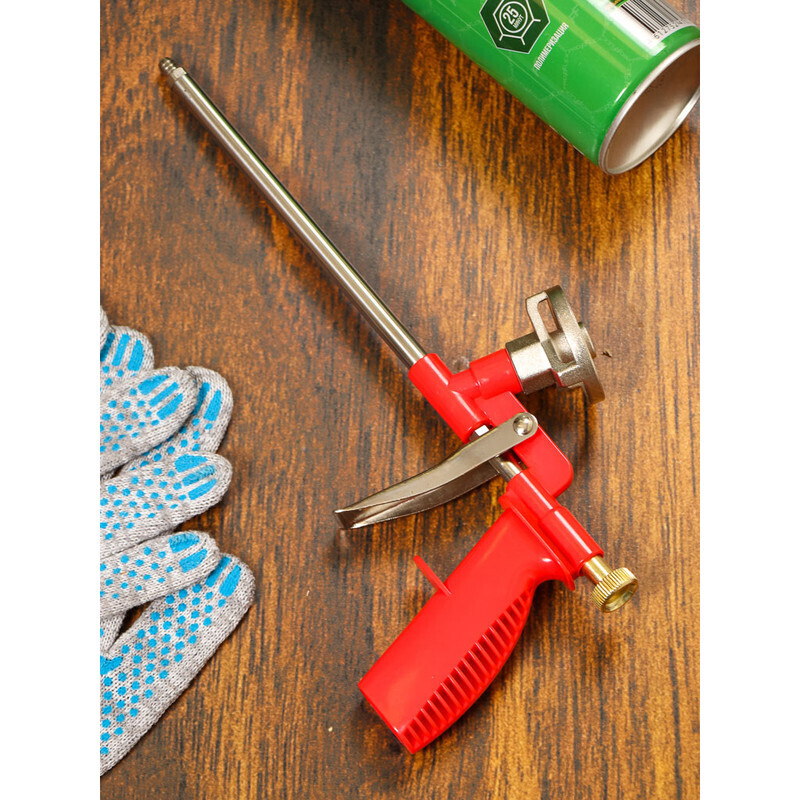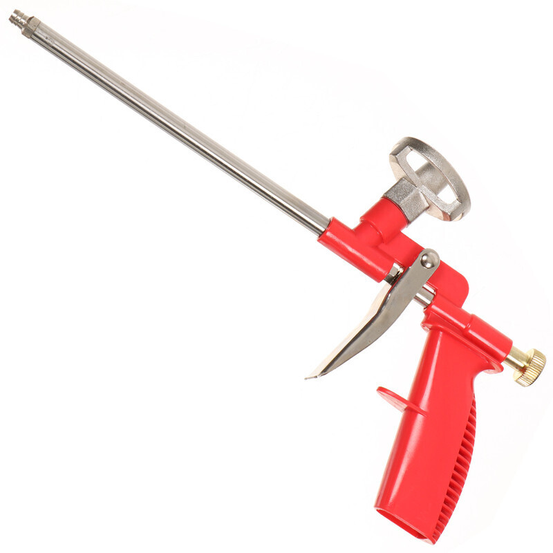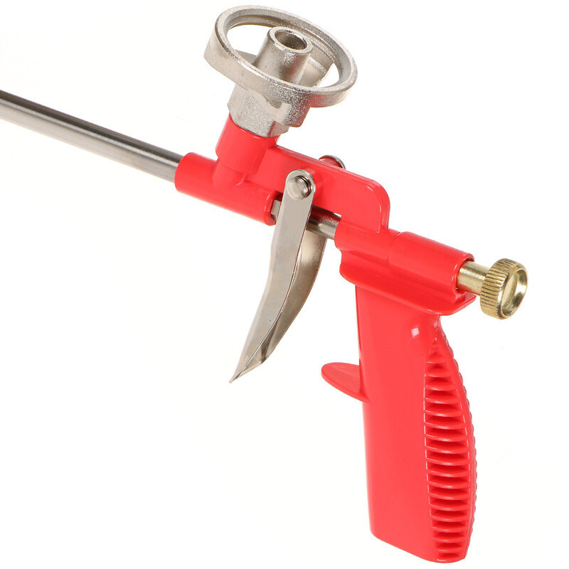 Пистолет для монтажной пены представляет собой специальный инструмент, благодаря которому работа с монтажной пеной проходит более точно. Благодаря возможности регулировать поток пены, пистолет идеально подходит для точного, быстрого и безопасного заполнения щелей и пустот. По сути, пистолет для монтажной пены представляет собой трубку со специальными клапанами, расположенными на обоих ее концах. Для большего удобства во время работы трубка оборудована пистолетной ручкой и курковым приводом выпускного клапана посредством стержня, который в свою очередь пропущен через трубку.
