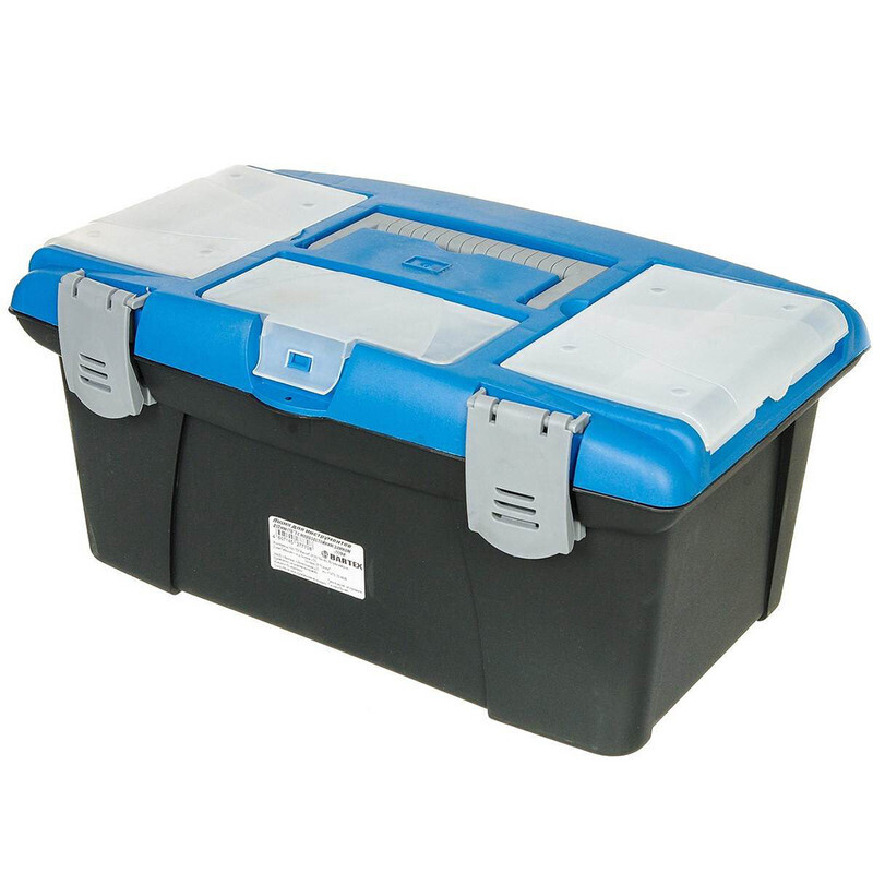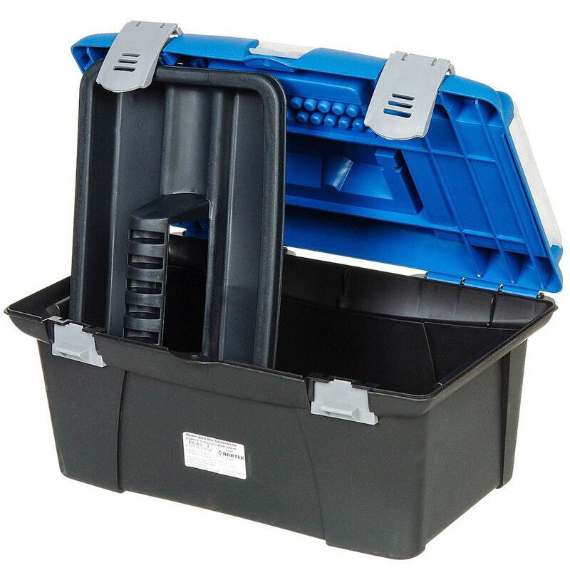 Ящик изготовлен из прочного пластика и предназначен для хранения и переноски инструментов. Вместительный, внутри имеет большое главное отделение. В комплект входит съемный лоток с ручкой для инструментов.