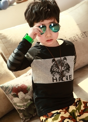 Цвет: Серый Цвет: Чёрный Вид и состав ткани: Хлопок Сезон: Весна-Осень Длина рукава : Длинный Рисунок Ткани: Изображения зверей Тип ворота: Круглый