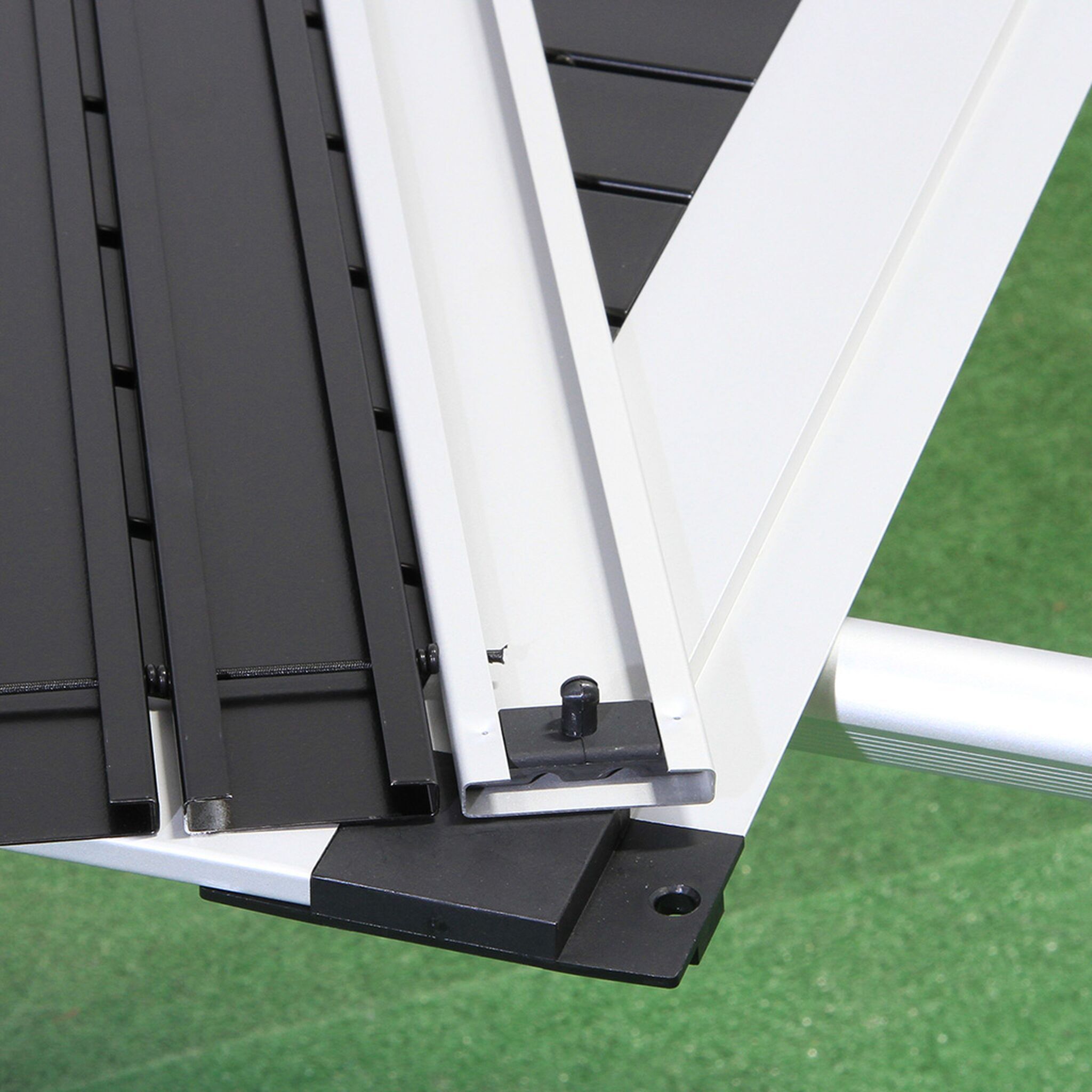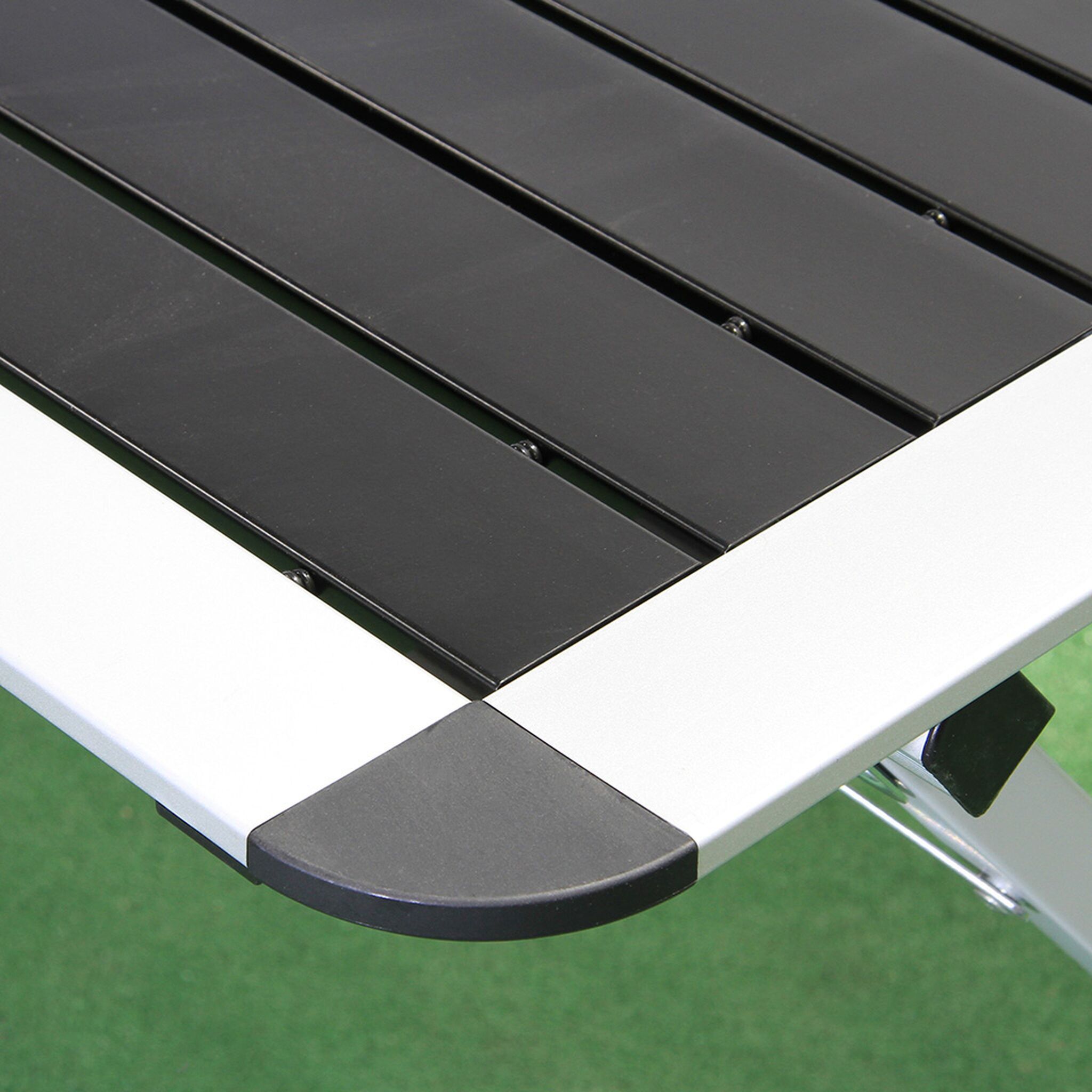 Стол имеет алюминиевый корпус. Алюминиевые модели столов очень практичны. Этот материал легкий, но очень прочный. Конструкция способна прослужить много лет при аккуратном обращении.