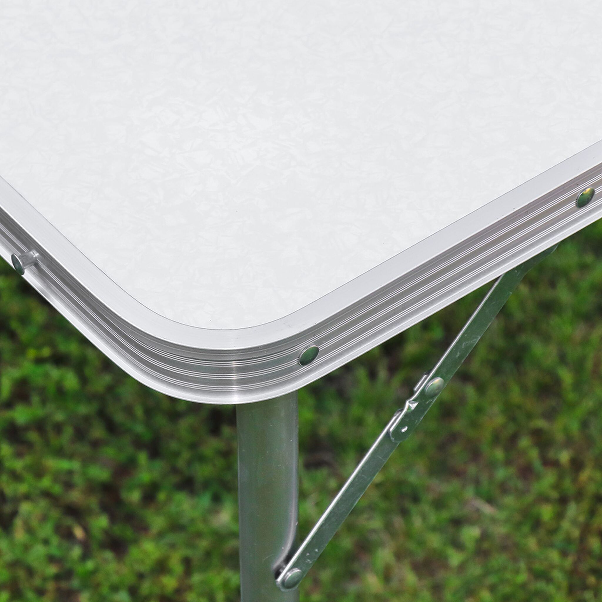 Стол имеет алюминиевый корпус и столешницу из МДФ. Алюминиевые модели столов очень практичны. Этот материал легкий, но очень прочный. Конструкция способна прослужить много лет при аккуратном обращении. МДФ не выделяет вредных веществ и неприятного запаха даже при нагревании и не впитывает воду. Ножки стола прорезинены.