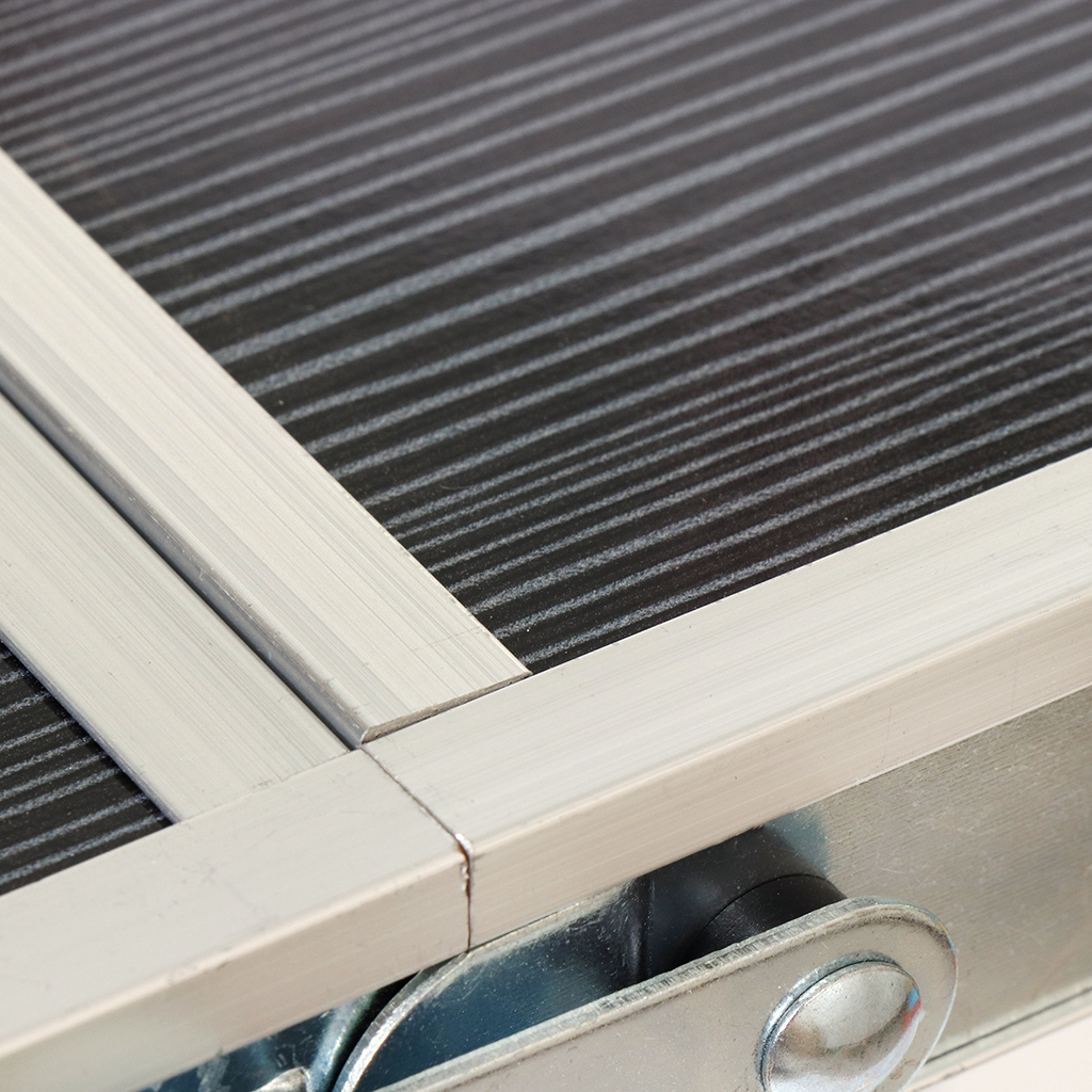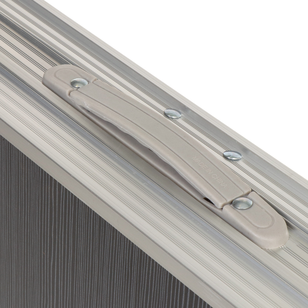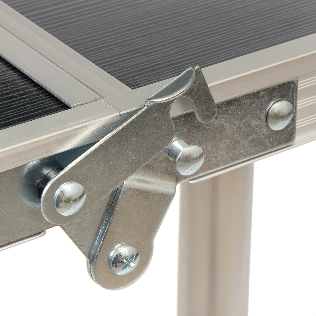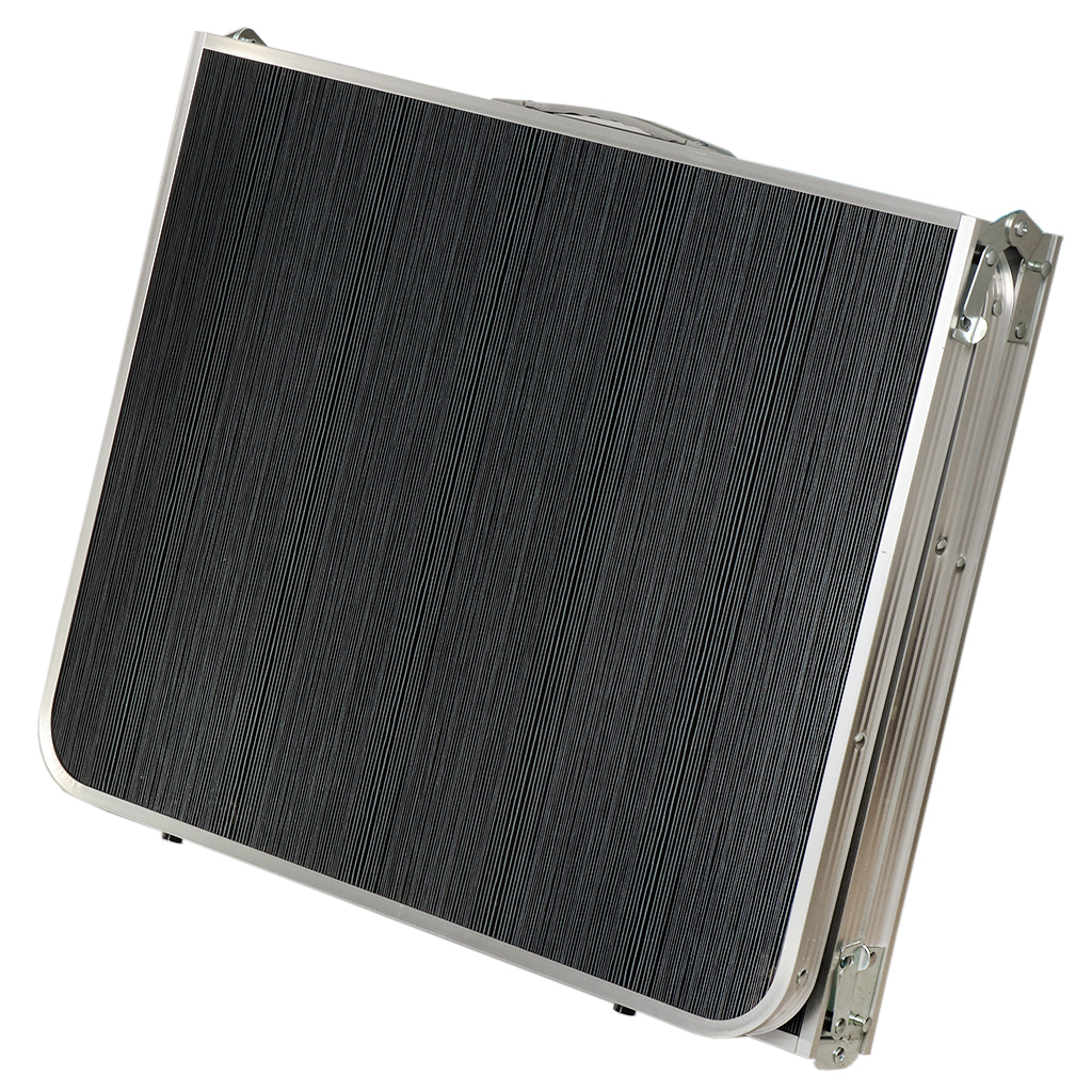 Стол имеет алюминиевый корпус и столешницу из МДФ. Алюминиевые модели столов очень практичны. Этот материал легкий, но очень прочный. Конструкция способна прослужить много лет при аккуратном обращении. МДФ не выделяет вредных веществ и неприятного запаха даже при нагревании и не впитывает воду. Ножки стола прорезинены.