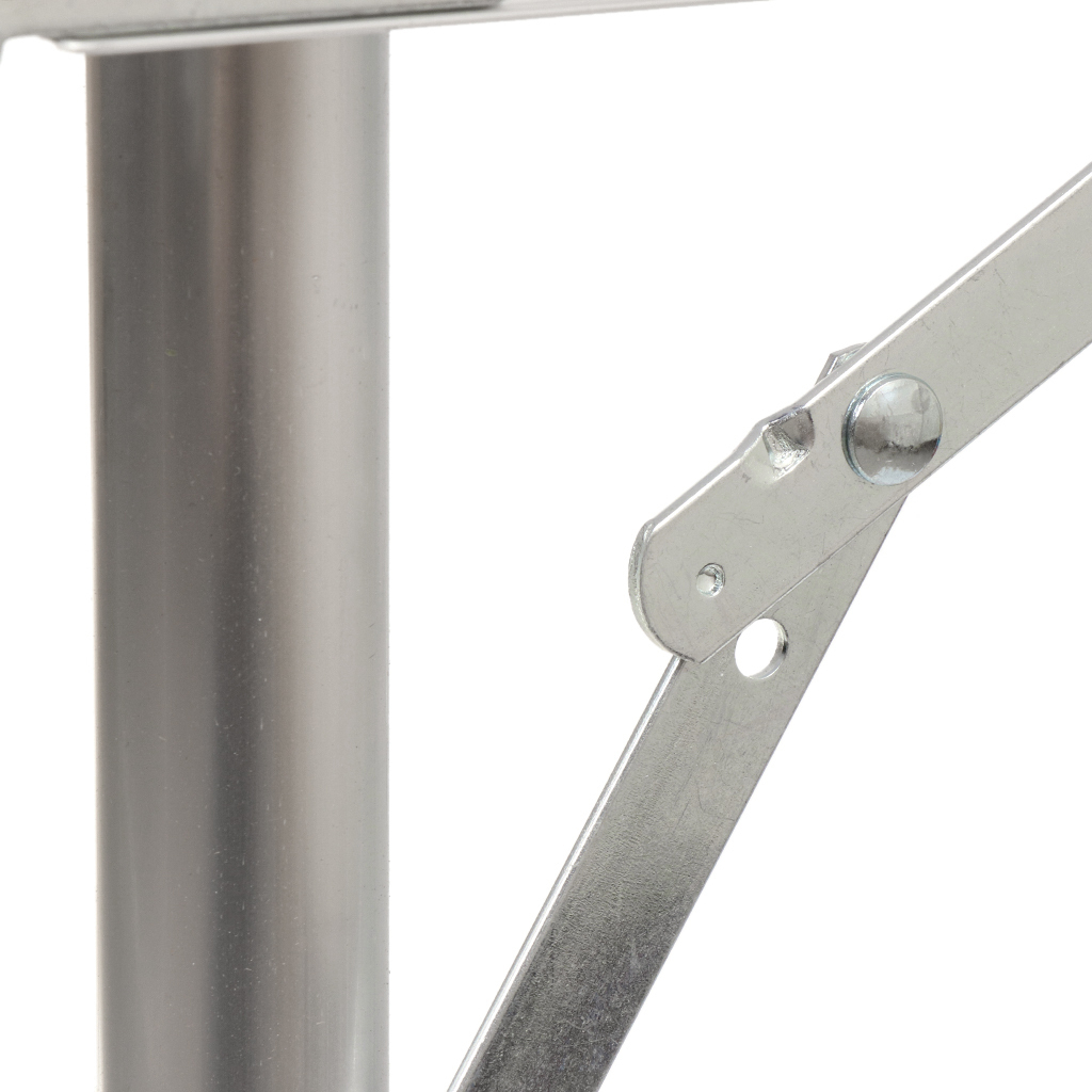 Стол оборудован боковыми треугольными рамами для надежной фиксации. На ножках стола имеются противоскользящие накладки, которые не царапают пол и не позволяют частицам грунта забиться в полые трубки ножек. Поверхность столешницы не впитывает воду и устойчива к царапинам. Рабочая поверхность стола плоская, что позволяет легко его очищать.