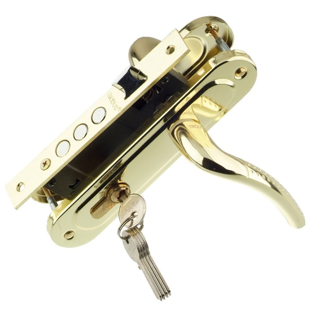 Замок врезной с ручками. Предназначен для установки в деревянные двери толщиной до 40 мм, правого и левого открывания. Межосевое расстояние - 61,5 мм. Удаление ключевого отверстия - 40 мм. Материал ручек - алюминий. Гальваническое покрытие. Комплектация: цилиндровый механизм 60 мм, ключ-ключ, 5 ключей, ответная планка, винтовые стяжки.