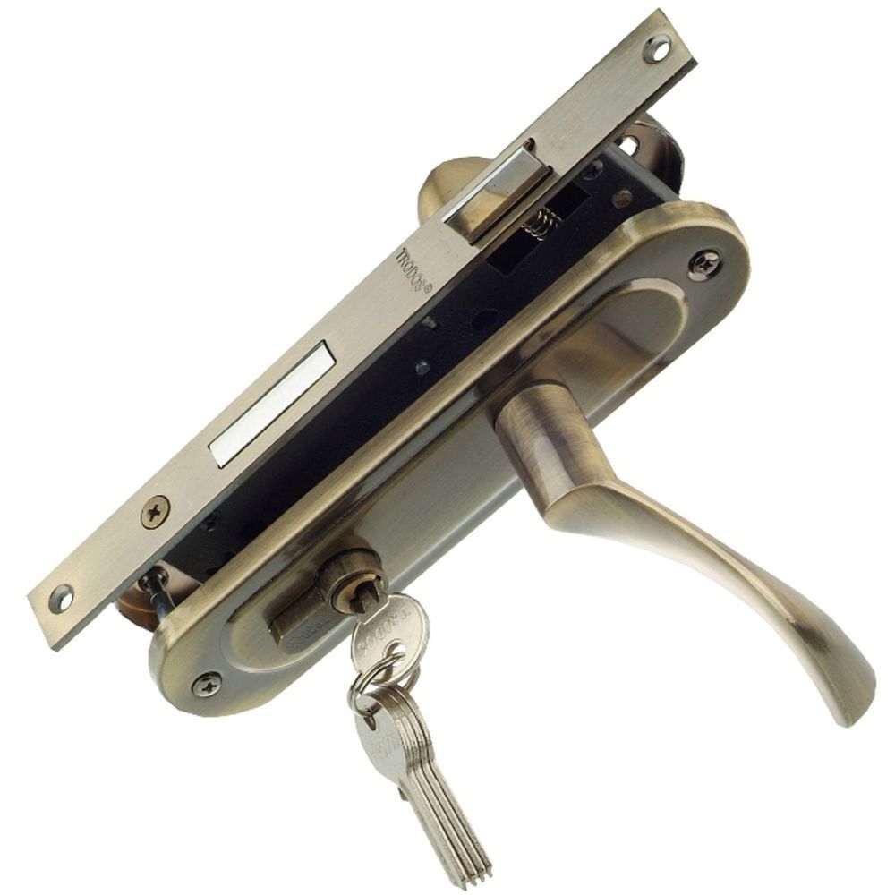 Замок врезной с ручками. Предназначен для установки в деревянные двери толщиной до 40 мм, правого и левого открывания. Межосевое расстояние - 70 мм. Удаление ключевого отверстия - 40 мм. Материал ручек - алюминий. Гальваническое покрытие. Комплектация: цилиндровый механизм 60 мм, ключ-ключ, 5 ключей, ответная планка, винтовые стяжки.