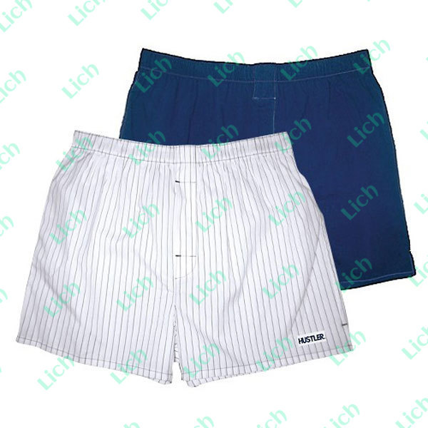 Мужские трусы-шорты из хлопка с добавлением спандекса - однотонного синего цвета и белого цвета в тонкую полоску с логотипом НUSTLER. Трусы на широкой резинке.