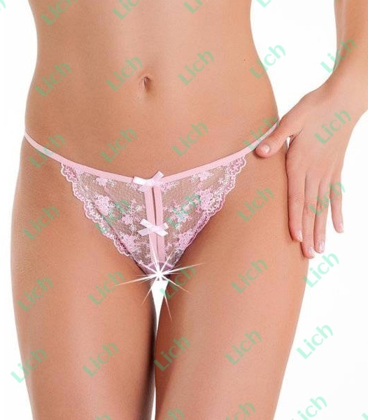 Эти розовые полупрозрачные трусики-стринг с изысканной вышивкой – само совершенство. Только взгляните на узор в виде маленьких цветов с пятью лепестками, мягкие линии, нежный цвет и пикантный вертикальный разрез, обрамлённый бантиками. Такое белье, несомненно, пригодится вам в ситуации, когда будет нужно вскружить голову мужчине. Розовые трусики с вырезом между ног с маленькими бантиками. Цвет: розовый. Размер: S-M-L.