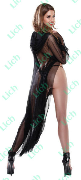 Комплект: длинная прозрачная накидка с капюшоном и стринги