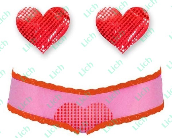 Комплект из 1 пары красных пэстис-сердечек с блёстками и розовых трусиков с красным кантом