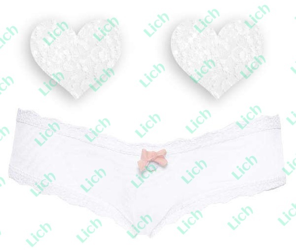 Этот изысканный комплект, состоящий из белоснежных трусиков и пэстис-сердечек, поможет вам сразить любимого наповал. Он не сможет отвести глаз ни от аппетитных бёдер, заключенных в тончайший плен трусиков с бантом, ни от пышного бюста, едва ли прикрытого наклейками с кружевной поверхностью. В комплекте: 1 пара пэстис, трусики.