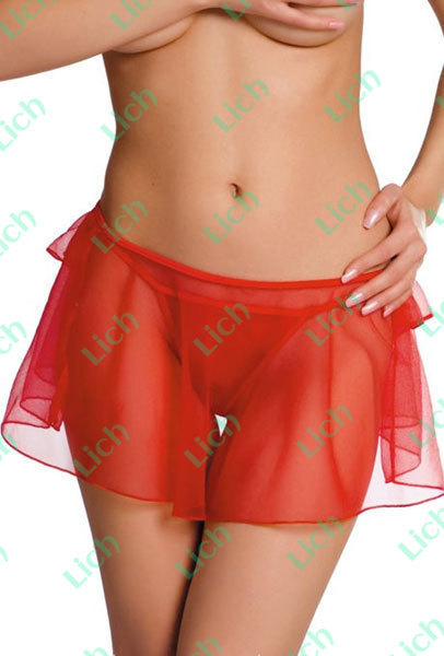 Вы решили порадовать мужчину импровизированным восточным танцем или просто эффектно продефилировать из ванной в спальню – тонкие трусики-стринг с прозрачной юбочкой сделают ваше выступление чрезвычайно успешным. Какой бы цвет вы ни выбрали – красный, белый, черный – благодарный зритель не сможет отвести взгляд от того, что «скрывает» невесомая ткань. Чтобы привнести в свою сексуальную жизнь что-нибудь новенькое, не обязательно штудировать «Камасутру» – этот откровенный наряд, состоящий из трусиков-стринг и воздушной юбочки с рюшами и эластичными завязками, станет приятной неожиданностью для любимого. Трусики-стринг на эластичных бретельках, юбочка с рюшами сзади, на эластичных завязках.