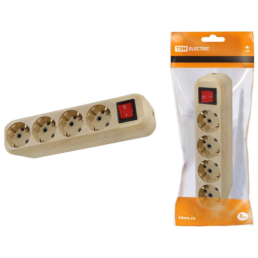 Корпус удлинителя 4 гн, 2 + 3, с/з, 16 А, 250 В, выкл, сосна, TDM, Эко, SQ1806-0052