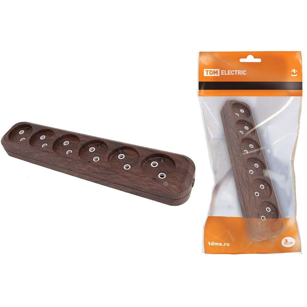 Корпус удлинителя 6 гн, 2пол, б/з, 10 А, 250 В, бук, TDM, Эко, SQ1806-0070