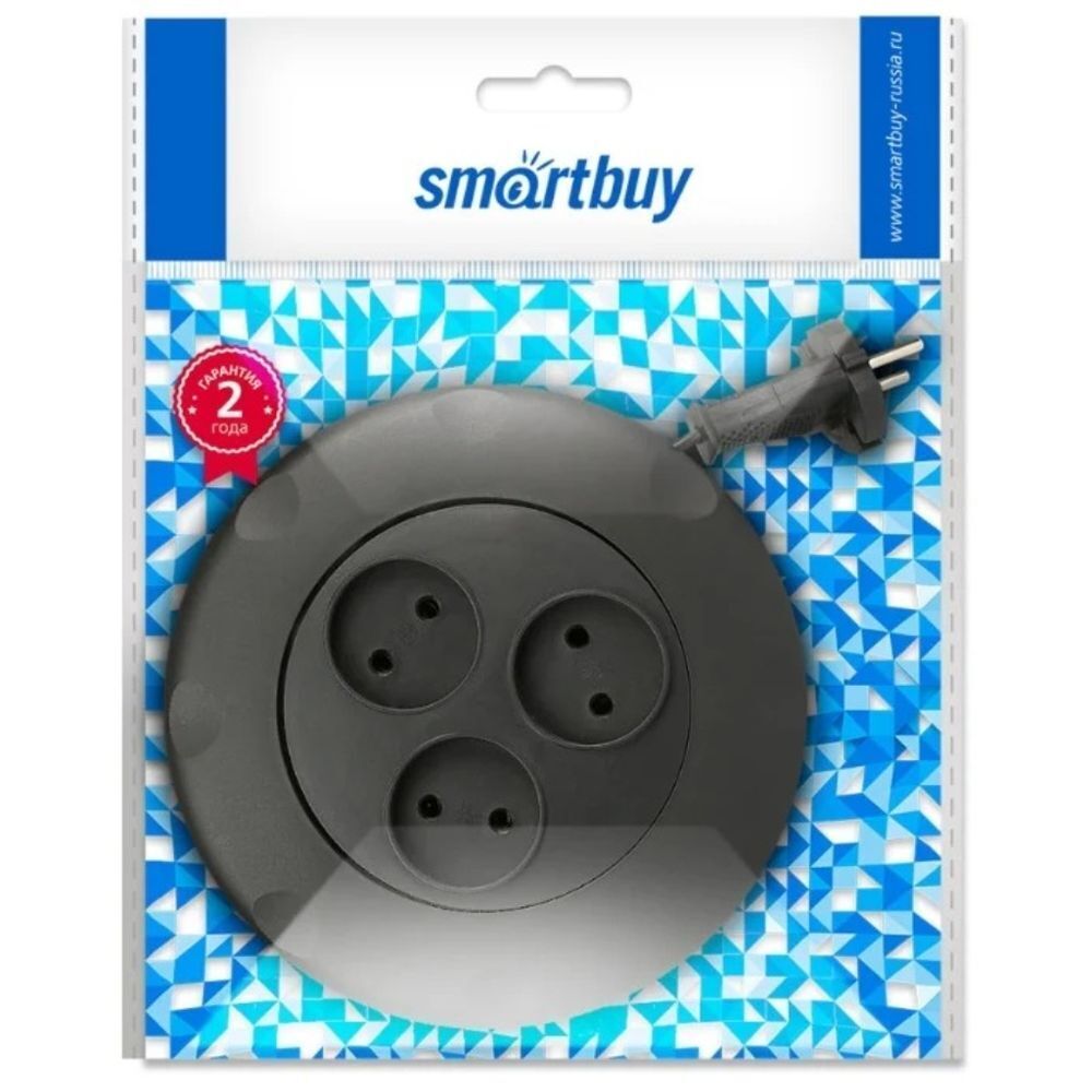 Удлинитель бытовой 3 гн, 3 м, ПВС, 2х1 мм2, б/з, 2200 Вт, чер, Smartbuy, SBE-10-3-03-B