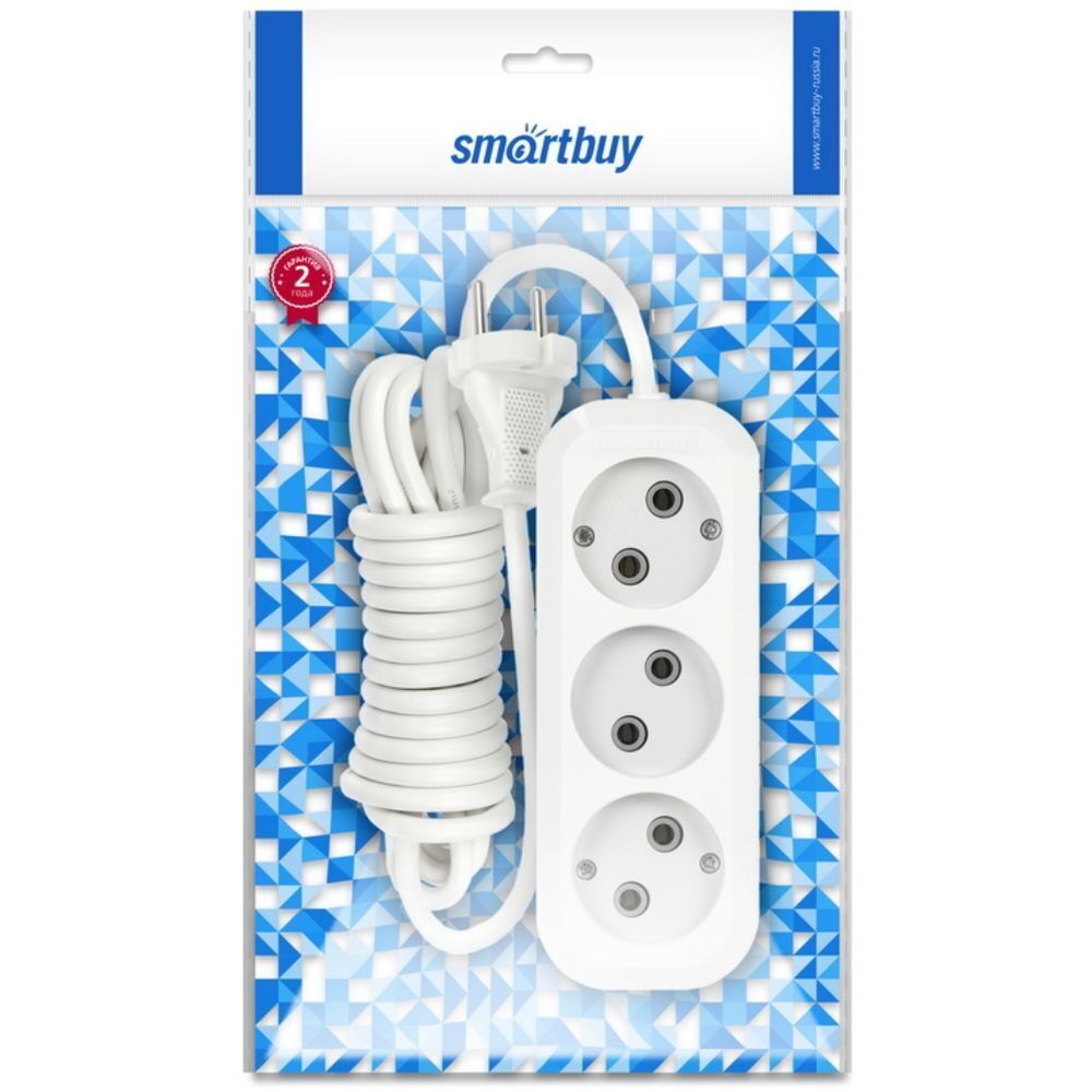 Удлинитель бытовой 3 гн, 7 м, ПВС, 2х1 мм2, б/з, Smartbuy, SBE-10-3-07-N