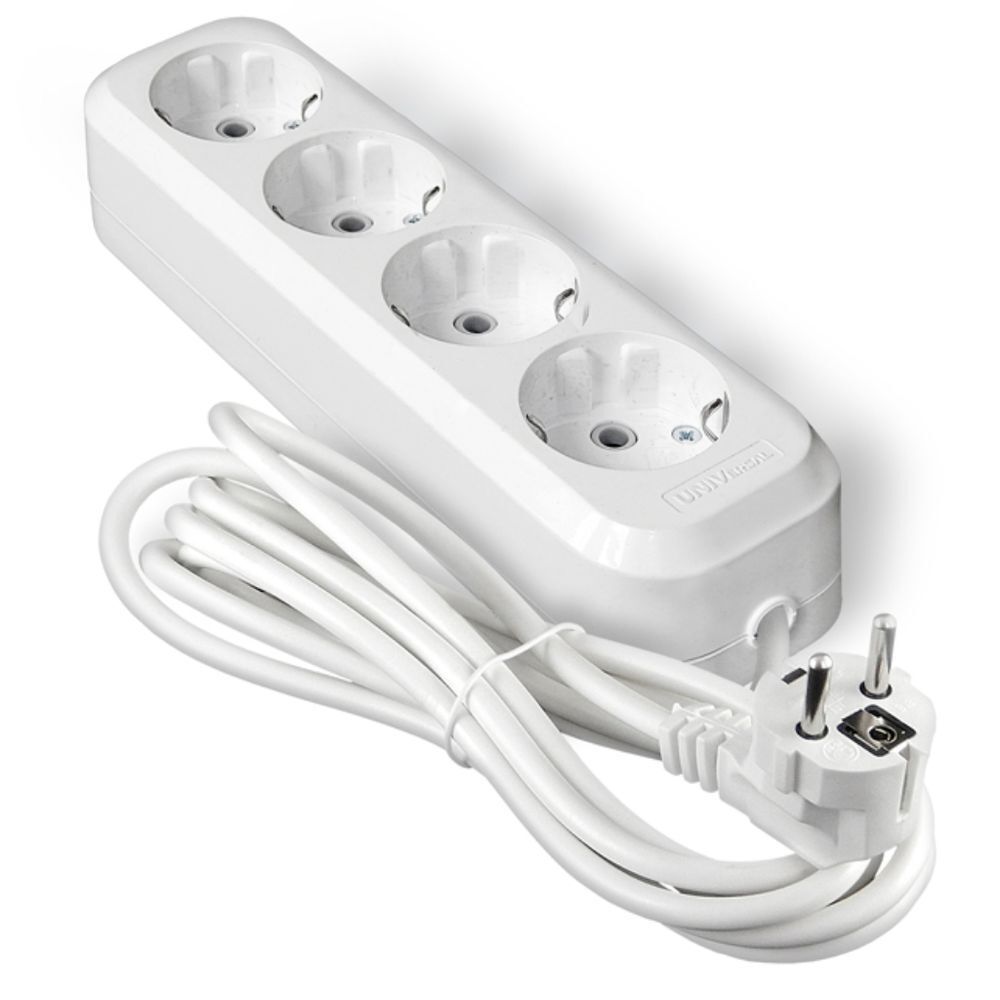 Удлинитель электрический UNIVersal Е-304 с заземлением и выключателем, позволяют подключить приборы мощностью до 3500 Вт.