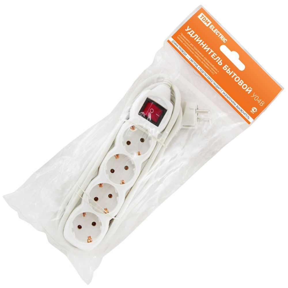 Удлинитель бытовой 4 гн, 5 м, ПВС, 3х1 мм2, с/з, 16 А, выкл, 250 В, TDM, У03В, SQ1303-0112