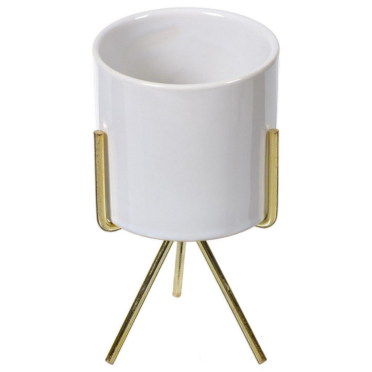 Оригинальное интерьерное кашпо небольшого объема. Выполнен из керамики на металлических ножках-подставках. Такое кашпо на подставке - идеальное решение для суккулентов. Также его можно использовать для оформления флористических композиций, небольших растений и даже использовать как подсвечник!