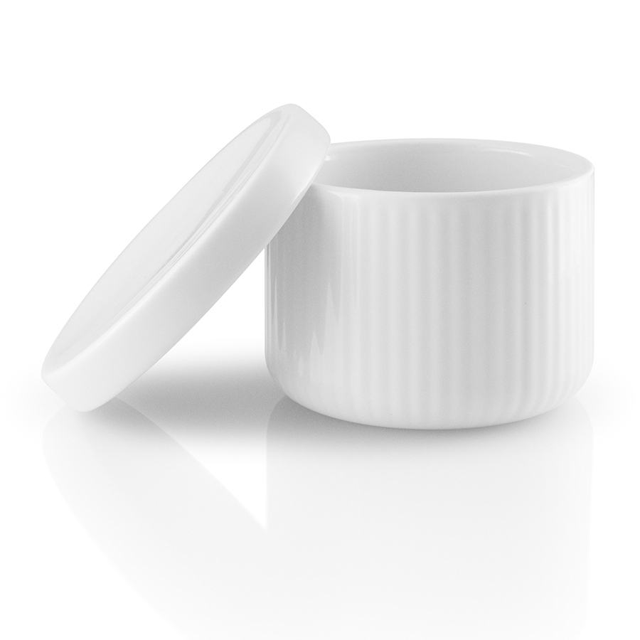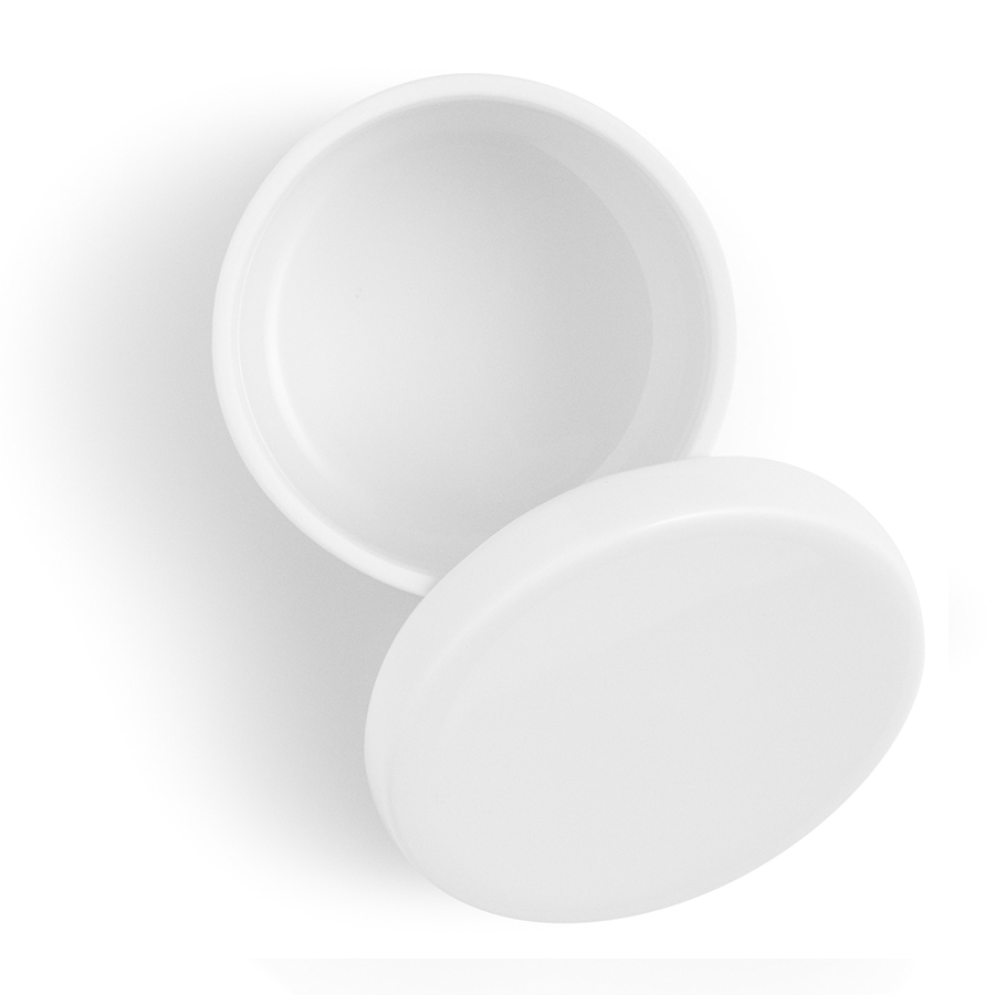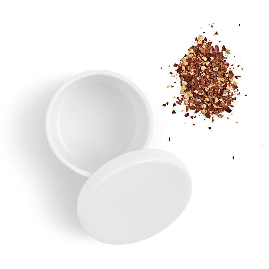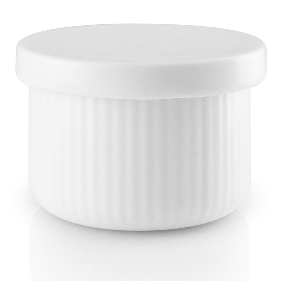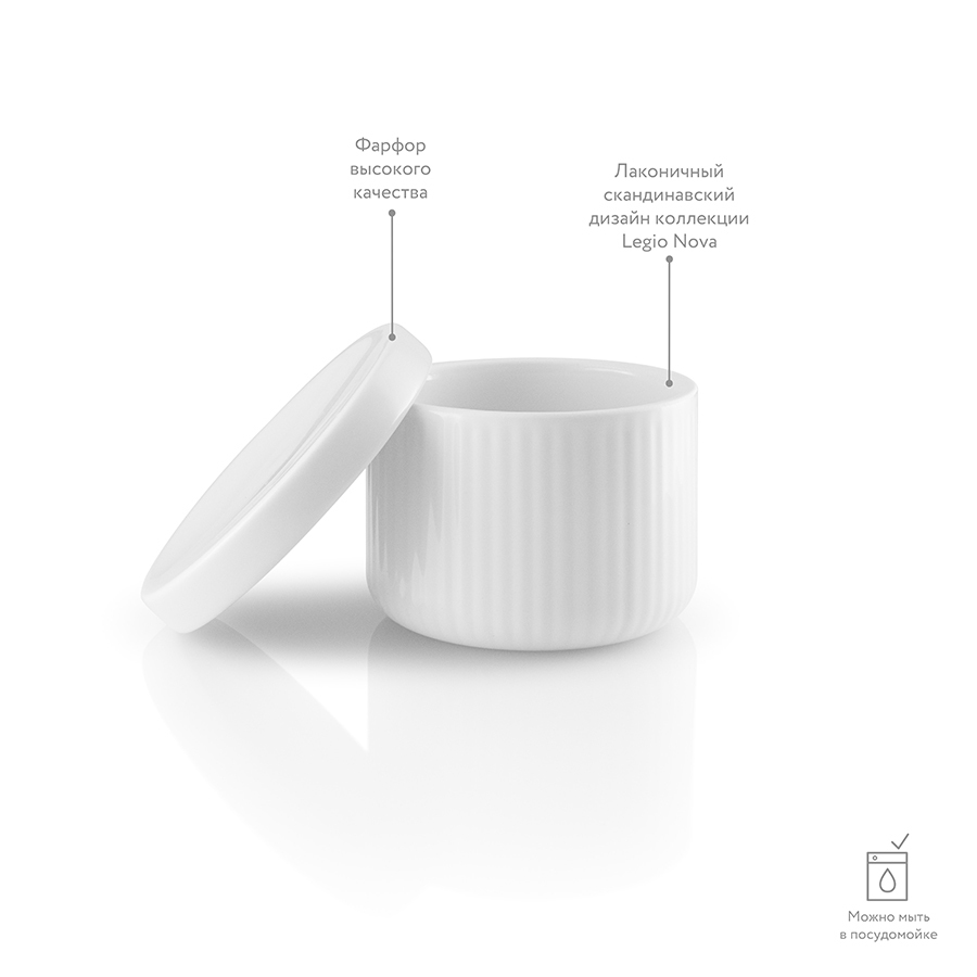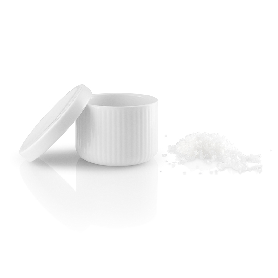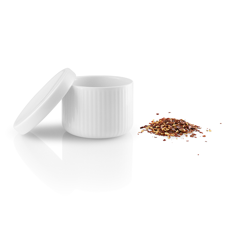 Удобная крышка не пропускает влагу внутрь емкости, тем самым не давая специям отсыреть. Емкость и крышка выполнены из высокопрочного фарфора белого цвета.