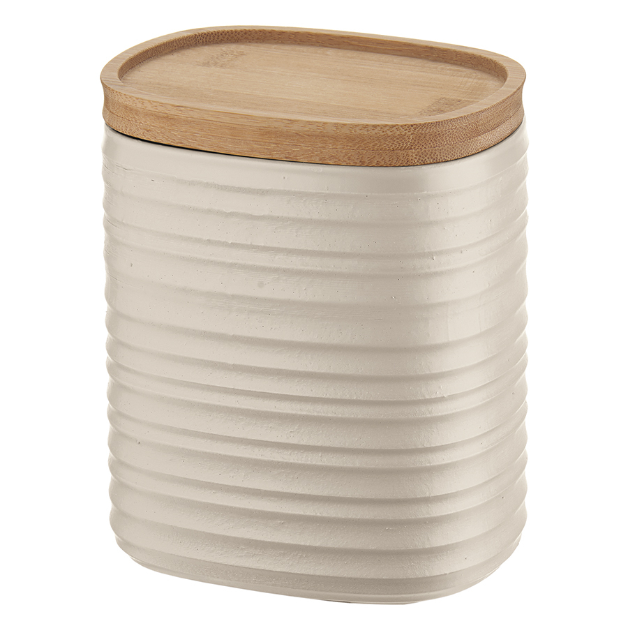Банка для хранения из переработанного пластика с экологичной бамбуковой крышкой поможет навести порядок на кухне и украсит пространство.