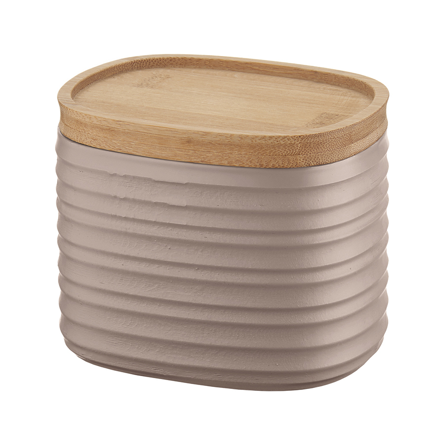 Банка для хранения из переработанного пластика с экологичной бамбуковой крышкой поможет навести порядок на кухне и украсит пространство.