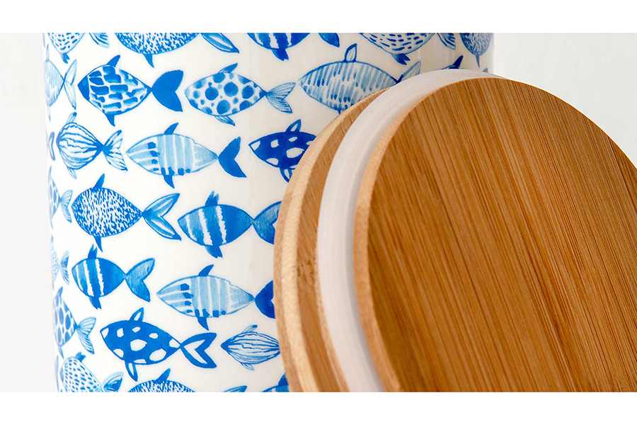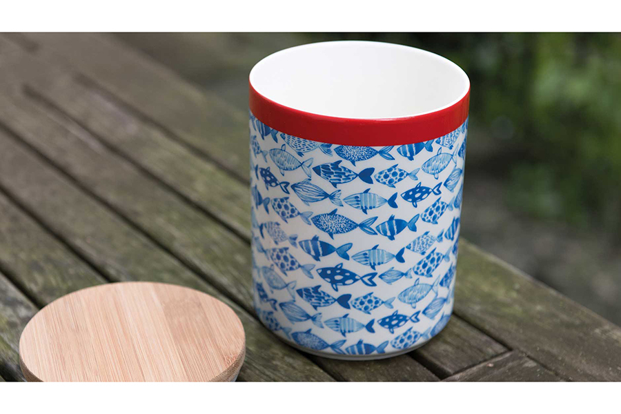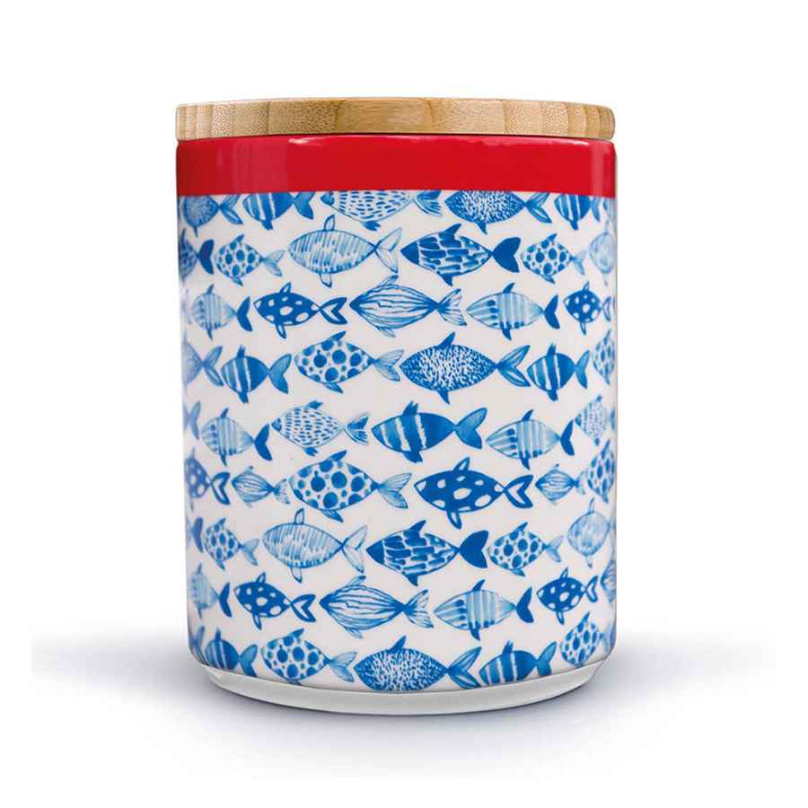 Фарфоровая емкость с герметичной крышкой Fish станет стильным украшением на современной кухне. Банка идеально подходит для хранения сыпучих продуктов: пасты, муки, круп, кофе. Классическая форма и яркий дизайн гармонично сочетаются с тончайшим фарфором высокого качества. Банка упакована в красивую подарочную коробку. Объем — 1,25 литров.