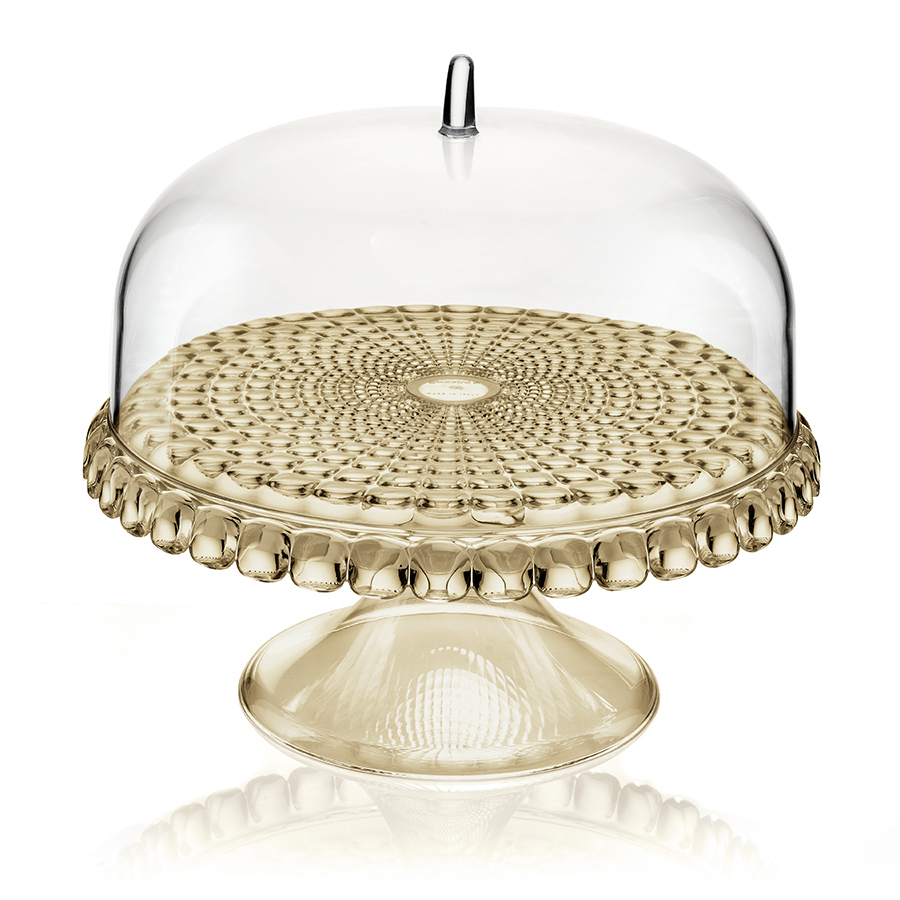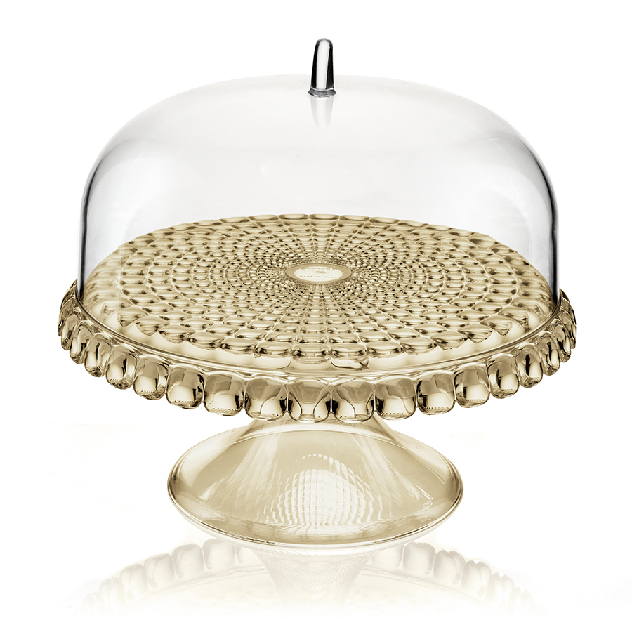 Тортовница Tiffany S с прозрачной крышкой в форме купола. Украсит собой любой праздничный стол или чаепитие на открытом воздухе. Дизайн предмета отличается оригинальной рельефной формой, которая в сочетании с прозрачным материалом заставляет поверхность сверкать и переливаться на свету. Тортовница диаметром 30 см идеально подойдет для подачи выпечки, сладостей, небольших закусок и, конечно, тортов. Крышка защитит продукты от заветривания, насекомых и других внешних факторов, что особенно важно для дачной или уличной сервировки. Посуда изготовлена из высококачественного пластика, устойчивого к износу и повреждениям. Материал не содержит вредных примесей и бисфенола-А. Тортовницу рекомендуется мыть вручную.