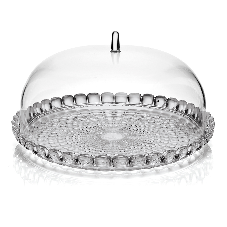 Блюдо для выпечки с прозрачной крышкой в форме купола. Красивый и функциональный предмет для подачи пирожных, тортов, сладостей, а так же фруктов и закусок. Дизайн блюда отличается оригинальной рельефной формой, которая в сочетании с прозрачным материалом заставляет поверхность сверкать и переливаться на свету. Блюдо можно переворачивать и использовать с двух сторон: загнутые края подходят для сервировки мягкой выпечки и пирожных, а плоская сторона идеальна для целых тортов и пирогов. Прозрачная крышка защитит продукты от заветривания, насекомых и других внешних факторов. Это особенно важно для сервировки на свежем воздухе. Диаметр - 30 см. Изготовлено из высококачественного органического стекла, устойчивого к износу и повреждениям. Не содержит вредных примесей и бисфенола-А. Моется вручную.