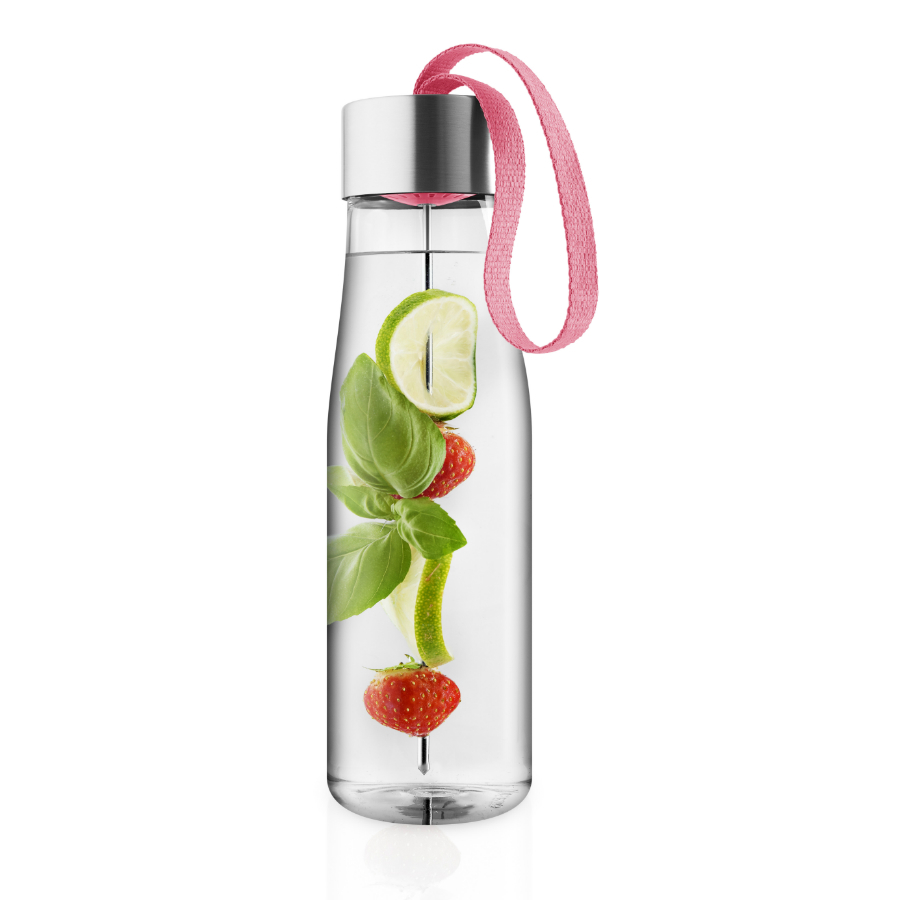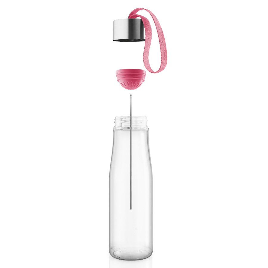 Бутылка для воды MyFlavour – это стильный и современный аксессуар для всех, кто следит за своим здоровьем. Дизайнеры бренда Eva Solo создали оригинальное дополнение к классической модели бутылки – съёмную шпажку для фруктов, которая крепится к крышке. Улучшите вкус воды кусочками ананасов, клубники, огурцов, дольками цитрусовых или имбиря. Напиток со свежими фруктами поможет зарядить организм энергией и бодростью в течения дня. Бутылка прекрасно подойдет для прогулок пешком или на велосипеде, а также для занятий спортом. Благодаря тканевому ремешку её удобно носить в руках. Герметично закрывающаяся крышка не позволяет жидкости разлиться, если бутылка находится в сумке или рюкзаке. Модель выполнена из качественного ударопрочного пластика, в составе которого отсутствуют вредоносные примеси, такие как фталаты и бисфенол-А. Бутылка подходит для мытья в посудомоечной машине, крышку рекомендуется мыть вручную.