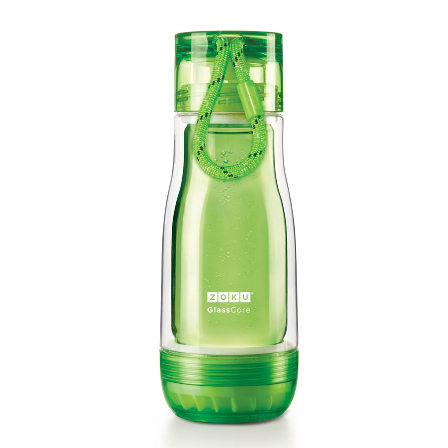 Бутылка Zoku идеально подойдет всем, кто регулярно занимается спортом и любит активный образ жизни. Бутылка выполнена из боросиликатного стекла и заключена в пластиковый корпус, укрепленный с двух сторон силиконовыми ударопрочными подкладками. Крышка полностью герметична, оснащена прочным и гибким шнурком для переноски и закрывается при повороте всего на 90° благодаря запатентованной технологии Rapid Lock™. Защитная конструкция с двойными стенками помогает избежать конденсации. Бутылка совмещает в себе все преимущества стекла и пластика - она не накапливает запахи, ее легко мыть и удобно брать с собой. Объем - 325 мл. Не содержит вредных примесей и бисфенола-А. Не предназначена для газированных напитков. Не подходит для использования в морозильной камере и микроволновой печи. Моется вручную.